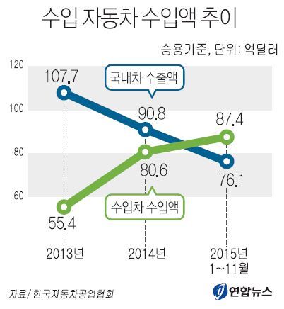 업계 관계자는 “수입차들의 공격적인 물량 공세와 함께 과감한 판촉 경쟁에 따라 수입차들의 수입액은 크게 느는 추세”라고 말했다. 연합뉴스