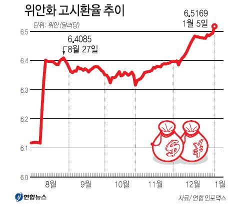 이는 위안화 가치를 전날보다 0.22% 절하한 것으로, 지난해 11월 3일 이래 가장큰 폭의 절하다.