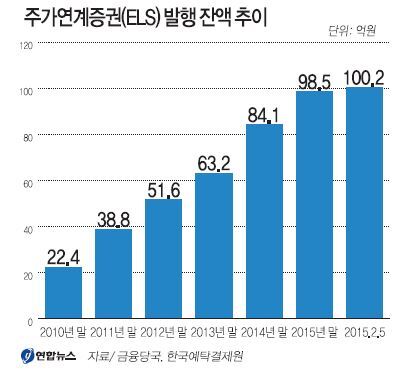 대규모 원금 손실 사태 우려가 불거진 속에서도 주가연계증권(ELS)을 비롯한 파생결합증권의 발행 잔액이 사상 처음으로 100조원을 돌파했다.