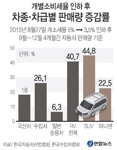 개소세 인하 대상에서 배제된 경차와 상대적으로 혜택이 적은 소형차는 개소세가 내려간 후 판매가 오히려 감소하는 역효과가 발생했다.