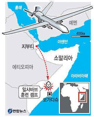 제프 데이비스 국방부 대변인은 미군이 지난 5일 모가디슈에서 북쪽으로 195㎞ 떨어진 알샤바브의 훈련 캠프를 드론으로 공습, 훈련을 받던 테러리스트 150명 이상을 사살했다고 밝혔다.