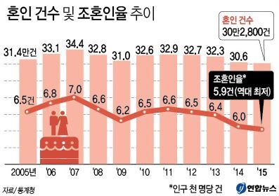 지난해 혼인율 역대 최저치