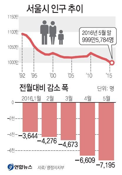 서울시 인구 1000만 붕괴