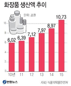 8일 식품의약품안전처가 발표한 ‘화장품 생산실적’에 따르면 작년 국내 화장품 총생산액은 10조7328억원으로 전년대비 19.6% 증가하며 사상 처음 10조원을 돌파했다. 화장품 생산은 최근 5년간 평균 13.9% 성장했다.