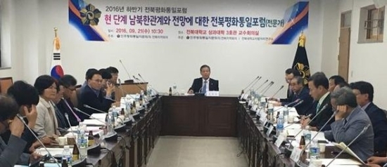 민주평화통일자문회의 전북지역회의는 21일 전북대 상과대학에서 ‘현단계 남북한 관계와 전망’을 주제로 2016년 제3차 전북평화통일포럼을 개최했다.