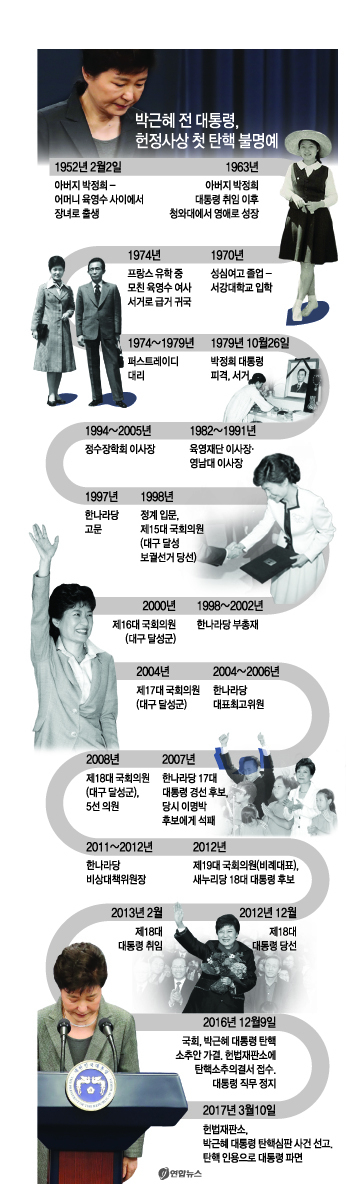 국정 운영 내내 불통과 최순실과의 40년 인연이 발목을 잡았다. 지난해 9월부터 언론보도를 통해 제기된 최순실의 미르·K스포츠재단 개입, 연설문 수정, 인사 개입 등 국정농단 의혹이 사실로 드러나면서 박 전 대통령은 국정동력을 상실했다. 국회는 지난해 12월 9일 박 전 대통령에 대한 탄핵소추안을 의결했고, 지난 10일 헌법재판소는 탄핵 인용 결정을 내렸다.