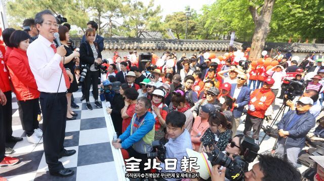 ▲ 자유한국당 홍준표 대선 후보가 전주를 방문한 1일 전주 경기전 앞에서 유권자들에게 지지를 호소하고 있다. 박형민 기자