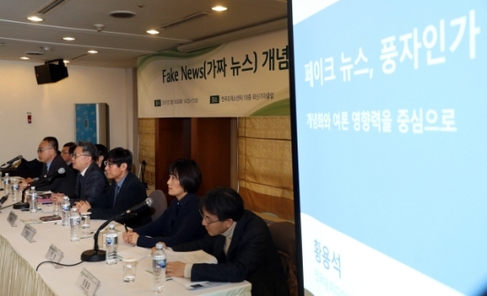 가짜 뉴스란 ‘정치·경제적 이익을 위해 의도적으로 언론보도의 형식을 하고 유포된 거짓 정보’ -한국언론학회와 한국언론진흥재단 주최 ‘가짜 뉴스 개념과 대응방안’ 세미나에서 가짜 뉴스의 개념 및 범위를 제한하기 위해 정의함(2017년 2월 14일).