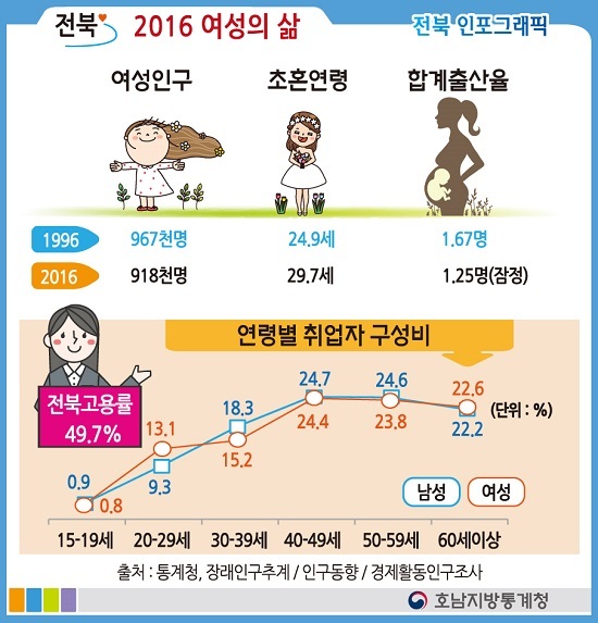 [호남지방통계청과 함께하는 '전북 인포그래픽'] 전북 2016 여성의 삶
