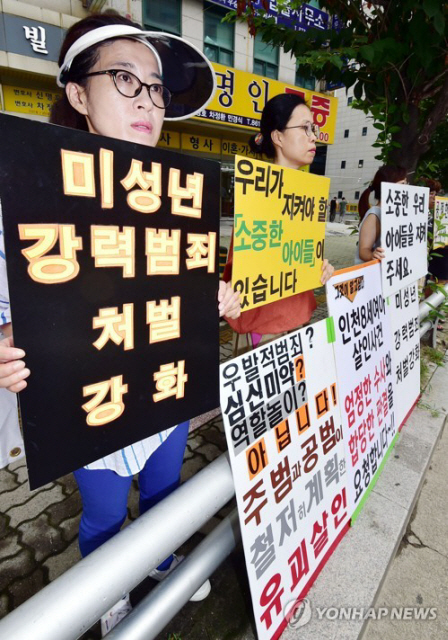 2004년 ‘밀양 여중생 집단 성폭행 사건’, 2010년 ‘군산 초등학생 집단 성폭행 사건’, 최근 드러난 ‘인천 초등학생 살인 사건’ 등 사회적으로 크게 공분을 산 사건도 잇따라 벌어졌다.