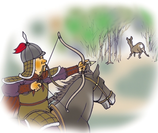 뒤를 따르던 호위랑 무독(武督) 곽성이 소리쳤다. 그 순간 계백이 말에 박차를 넣으면서 안장에 걸친 활을 빼들었고 고삐를 입에 물면서 전통에서 화살을 꺼내 시위에 걸었다. 눈 깜빡하는 순간이다. 그 순간 흥분한 전마(戰馬)는 네 굽을 모아 전력 질주를 시작했다. 노루를 쫓는 것이다. 계백이 풀숲 사이로 보였다가 숨기를 반복하는 노루를 응시했다. 전마는 빠르지만 노루와의 간격은 좁혀지지 않았다. 1백여보, 그 때 뒤쪽에서 호위 기마군이 쫓아왔지만 무서운 속도로 내달리는 계백의 30보쯤 뒤다. 그때 계백이 활을 만월처럼 당겼다. 달리는 말위에서 입에 고삐를 물고 겨눈다. 뒤를 따르는 호위군사는 숨을 죽인 채 응시했다. 그 순간 계백이 시위를 놓았다. 앞쪽 1백10보쯤 떨어져있던 노루가 한걸음에 7~8보 간격쯤으로 도약을 했는데 그 도약해서 떠오른 순간을 겨누고 쏘았다.
