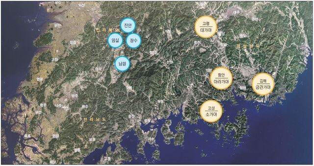 가야의 기존 영역은 경남과 경북일대로 보았으나 가야 유물이 낙동강 동쪽 일부와 호남 동부지역, 그리고 전남 광양만, 순천만 일대와 최근에는 전북 남원, 장수, 진안, 임실에서도 확인돼 영역이 상당히 넓었음을 알 수 있다.