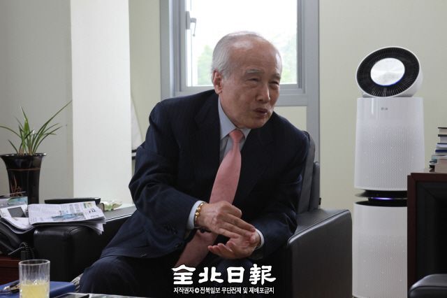현대중공업 군산조선소의 가동 중단에 이어 한국지엠 군산공장이 문을 닫았다. 수 만 명이 일자리를 잃고 협력업체가 줄줄이 문을 닫는 등 전북경제가 악화일로로 치닫고 있다. 이런 사태의 원인은 무엇이고, 앞으로의 대책은 무엇인지, 전북일보가 창간 68주년을 맞아 한성대 이종훈 이사장(81)을 모시고 이를 점검하는 시간을 가져봤다. 이종훈 이사장은 군산 출신으로 중앙대 경제학과를 나와 도쿄대에서 경제학 박사학위를 받았으며, 중앙대 총장과 덕성여대 이사장을 지냈다.