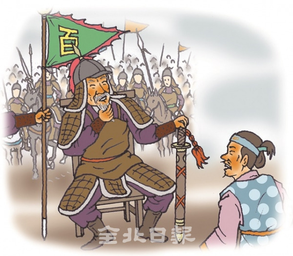 “갑옷을 벗고 칼을 풀고 걸어서 나와 맞는 법이다. 가서 그렇게 전해라.”