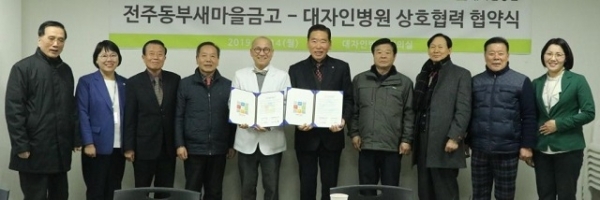 전주동부새마을금고와 전주 대자인병원은 14일 업무협약을 맺었다.