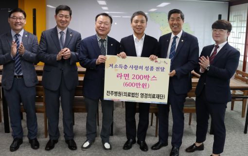 영경의료재단(이사장 최정웅) 전주병원·호성전주병원은 지역사회의 어려운 이웃과 복지시설에 전달해달라며 전주시에 라면 200박스, 중화산1동과 호성동 주민센터에 각 100박스, 80박스를 전달했다고 10일 밝혔다.