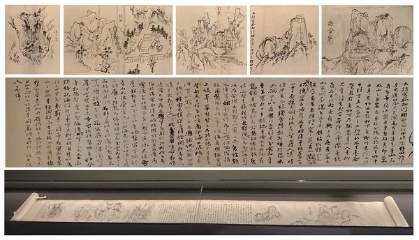 글과 그림을 따라가 보면 음력 2월이라고만 기록한 그의 동선을 만날 수 있다. 부안 유람의 여정은 아들이 있는 ‘부안현의 서문’을 나서면서 시작되어 ‘동림서원, 청계서원’을 거친다. 변산 입구로 들어서 전각이 날듯이 서있다며 ‘개암사’를 칭하고 그림에서의 첫 장면이 펼쳐지는데, 우금굴이 있는 ‘우금암’을 웅장하게 표현하고 그 품 안에 옥천암을 그려 넣었다. 바로 옆의 봉우리는 다른 방향에서 바라본 ‘우금암’을 그려 넣은 것으로 보인다. 중앙에는 소감을 적어놓고, 우금암에서 실상사로 가는 길에 있는 석벽에 둘러싸인 평지인 ‘문현’을 그렸다. 그림 한켠을 살펴보면 산길을 오르는 가마 탄 일행의 정겨운 모습을 볼 수 있다.