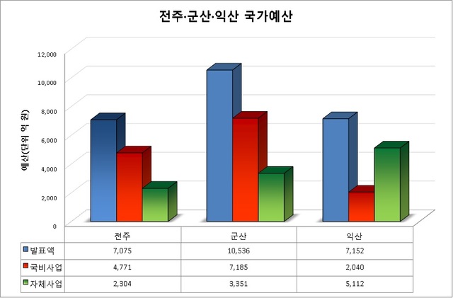 특히 군산시는 전주시와 달리 균특이나 복지예산 일부를 포함시키는 바람에 국가예산 확보액이 높아진 것으로 분석됐다.