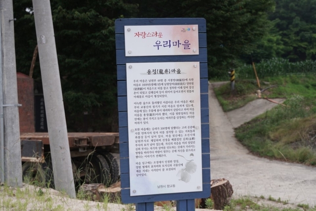 용정마을의 용정(龍井)은 글자 그대로 ‘용의 우물’을 의미합니다. 이러한 이름이 붙여진 이유는 마을 초입에도 잘 설명되어 있듯이 이곳이 예로부터 교룡산의 정기가 서린마을로서 마을에 있는 우물에 용이 내려와서 살았다는 것에서 연유합니다.