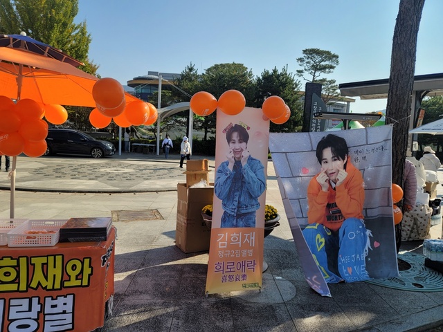 이 씨는 “축제 시즌이 되면 지역 희랑별들이 사비를 들여 축제 부스를 설치한다. 김희재를 알리고 싶다는 마음으로 앨범, 키링, 팔찌, 응원봉도 무료로 나눠 준다. 축제 없을 때 같이 모여서 주황색 구슬과 실을 사서 키링, 팔찌도 만들고 한다"고 설명했다.