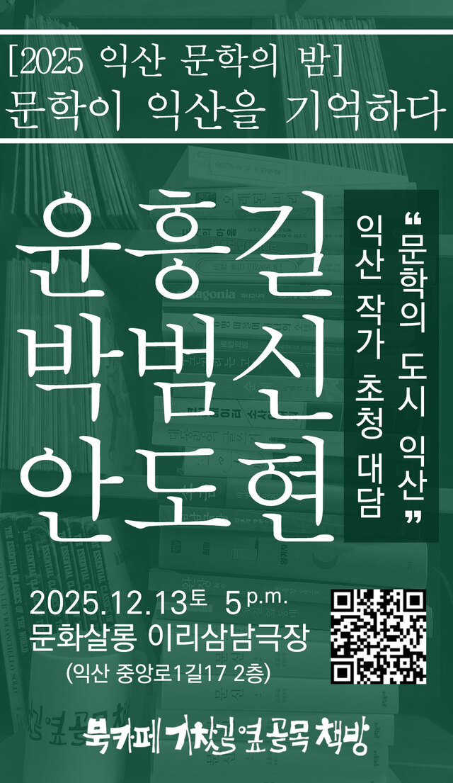 익산 문학사를 대표하는 작가들이 한자리에 모여 ‘문학 도시 익산’을 다시 생각해보는 자리가 마련된다. ‘2025 익산 문학의 밤 – 문학이 익산을 기억하다’ 다음 달 13일 오후 5시, 익산 중앙동 문화살롱 이리삼남극장에서 열린다.