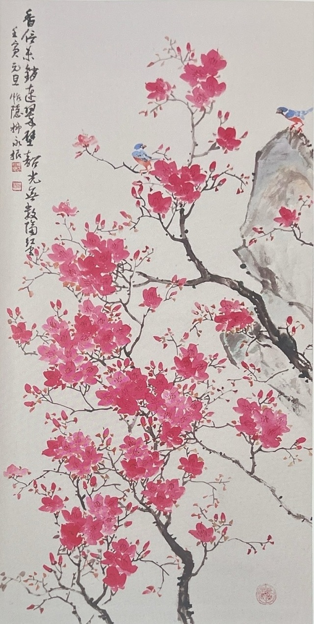 또 다른 작품 ‘희망’은 진달래와 참새를 화면에 등장시켜 수묵채색화로 먹선의 절제와 붉은 채색의 과감함이 조화를 이룬다. 수묵 특유의 스며듦과 퍼짐을 독창적 화법으로 구현하여 희망찬 봄날을 떠올리게 한다.