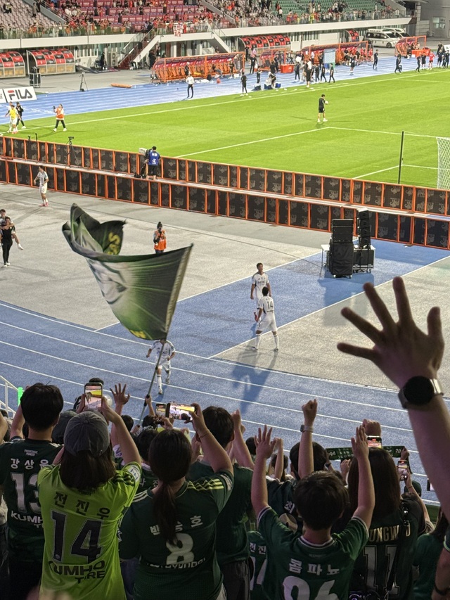 경기 전부터 서포터즈를 이끄는 콜리더의 신호에 맞춰 응원이 시작됐다. 누군가는 가족과, 누군가는 친구·연인과, 누군가는 혼자서 왔을 테지만, 막상 현장에서는 ‘혼자’라는 느낌은 찾아보기 어려웠다. 전북이 골망을 흔들면 처음 보는 사람과도 자연스럽게 끌어안고 환호했다.