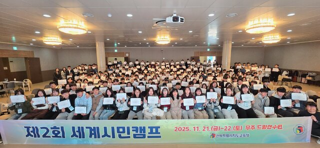 전북특별자치도교육청은 학생 해외연수 경험을 공유하고 미래 세계시민으로서의 역량을 강화하기 위한 ‘2025년 세계시민 캠프’를 지난 21~22일까지 무주 드림연수원에서 개최했다.