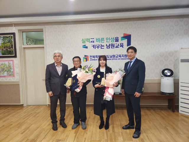 이날  남원교육대상 수상자로는 초등분야에서 왕치초등학교 김혜정 교사, 중등분야에서는 용성중학교 전종희 교사가 선정돼 수상의 영예를 안았다.