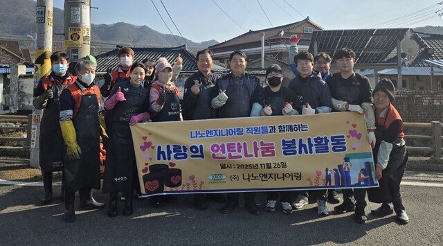 나노엔지니어링은 26일 원색명화마을에서 에너지 취약계층을 위한 사랑의 연탄 나눔 봉사활동을 했다고 밝혔다. 올해는 성금 180만 원으로 연탄 2000장을 후원했다.
