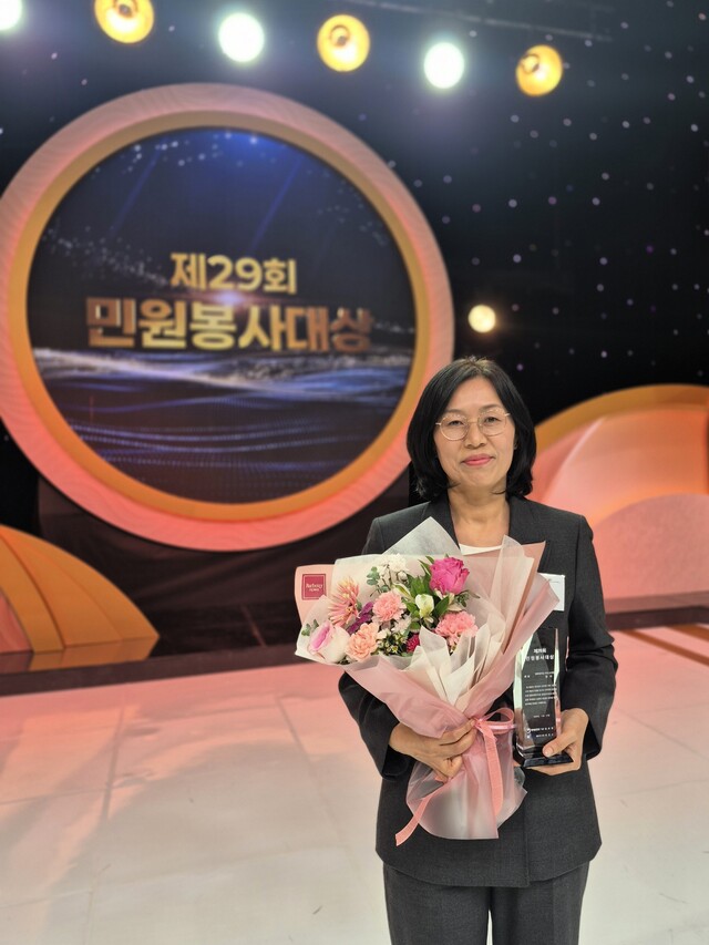 무주군 보건행정과 김미화 팀장이 27일 서울 SBS 상암동 공개홀에서 열린 2025년 제29회 민원봉사대상 시상식에서 본상을 수상하는 영예를 안았다.