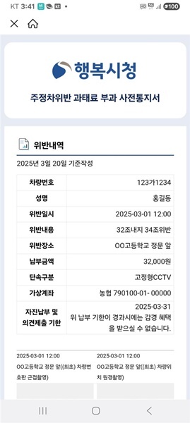 서비스는 4월부터 시행되며 위반 차량 소유주의 휴대전화(자동차 등록 정보 기준)로 카카오톡 알림톡을 통해 고지서를 발송하는 방식이다.