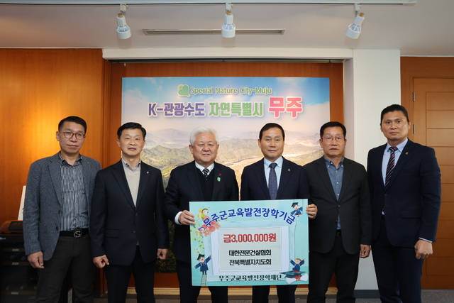 대한전문건설협회 전북특별자치도회(회장 임근홍)가 (재)무주군교육발전장학재단(이사장 황인홍 군수)에 장학금 300만 원을 기탁했다.
