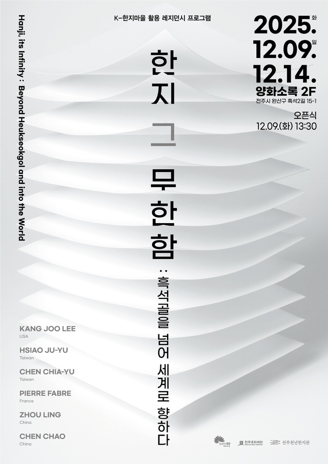 전주문화재단(대표이사 최락기)이 주관하고 전주천년한지관이 추진한 이번 전시는 미국‧대만‧프랑스‧중국 등 4개국에서 참여한 해외 작가 6명이 전주한지 장인들과 협업하며 진행한 창작 활동의 성과를 공개하는 자리다.