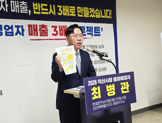 최병관 전 전북특별자치도 행정부지사가 ‘익산 소상공인·자영업자 매출 3배 프로젝트’를 발표했다.