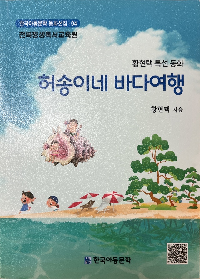 2023년 박화목 아동문학상을 수상한 황현택 아동문학가의 동화선집 <허송이네 바다 여행>(한국아동문학)이 출간됐다. 표제작인 ‘허송이네 바다 여행’을 비롯해 ‘청대골 아이들’, ‘별님이와 삼촌의 노래’, ‘훈장 선생님의 종소리’ 등 모두 9편의 동화가 실렸다.