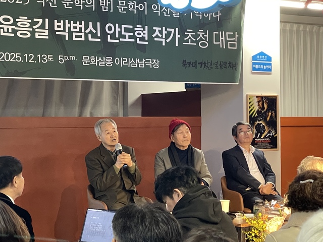 지난 13일 익산 중앙로의 한 문화공간, 문화살롱 이리삼남극장에서 열린 ‘2025 익산 문학의 밤’은 오랜 시간 이름으로만 남아 있던 ‘문학 도시 익산’을 현재형으로 불러내는 현장이었다. 윤흥길·박범신·안도현. 한국 문학사에서 각기 다른 결을 이뤄온 세 작가가 한자리에 모였다는 사실만으로도 공간은 일찌감치 열기로 가득 찼다.