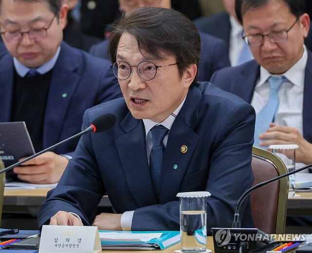 김의겸 새만금개발청장이 지난 12일 세종시 정부세종컨벤션센터에서 이재명 대통령에게 업무보고를 하고 있다. /연합뉴스