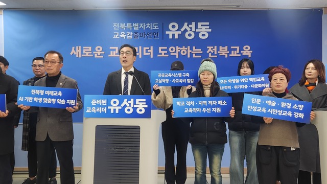 유성동 좋은교육시민연대 대표는 16일 전북교육청 브리핑룸에서 기자회견을 열고 전북교육감 출마를 공식 선언했다.