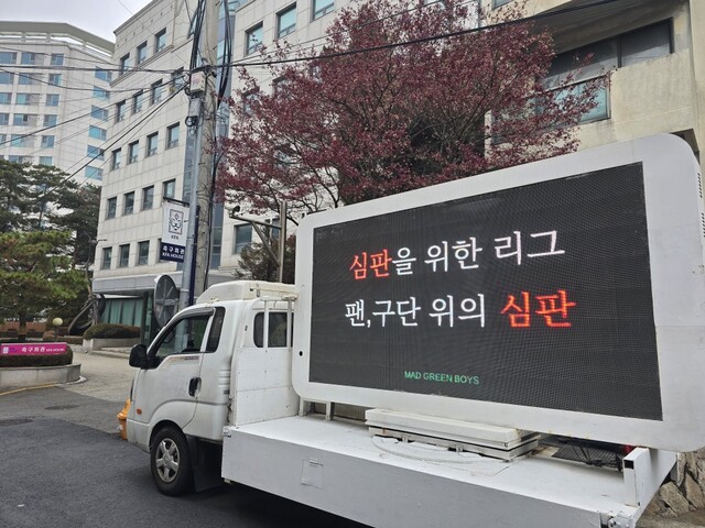 포옛 감독 떠나게 한 프로축구심판협회·연맹 상벌위 만행 규탄 전북 서포터즈 연합 매드그린보이즈 집회·모금 등 진행 단체 행동 관련 모금 나흘 만에 1000만 원 넘게 모여