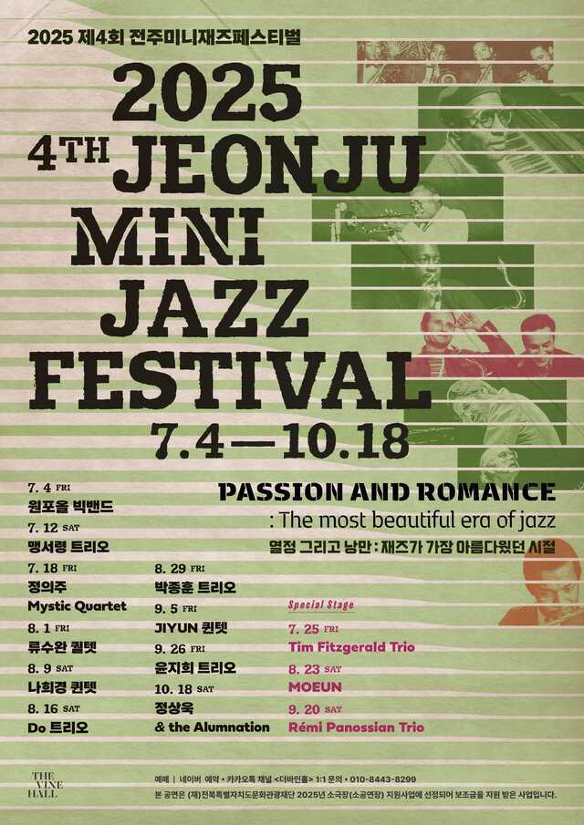 재즈는 2025년 전북 서양음악계의 또 다른 확장 축이었다. 전주미니재즈페스티벌은 국내외 연주자들을 초청해 스윙과 비밥, 하드밥, 모던 재즈에 이르기까지 장르의 스펙트럼을 넓히며 관객과 만났다. 매주 이어지는 정기 공연 형식은 일회성 이벤트를 넘어, 지역 관객이 재즈를 일상적으로 향유할 수 있는 환경을 만들었다.