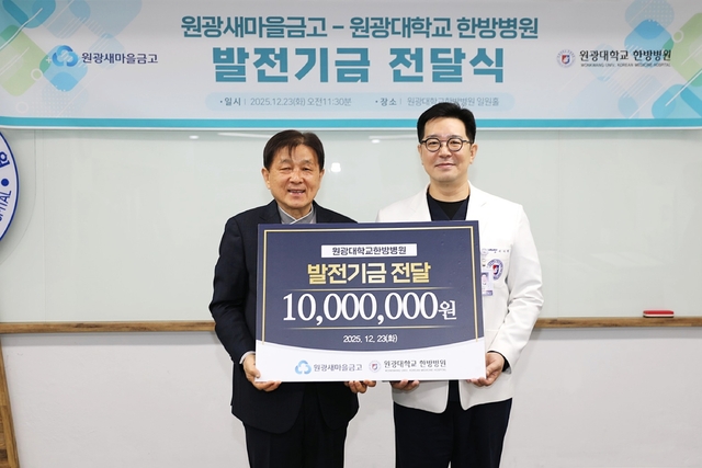 금고는 지역 의료 서비스 발전과 공공의료 강화를 위해 지난 22일과 23일 원광대학교 치과병원과 원광대학교 한방병원에 각각 1000만 원씩 총 2000만 원의 발전기금을 전달했다.