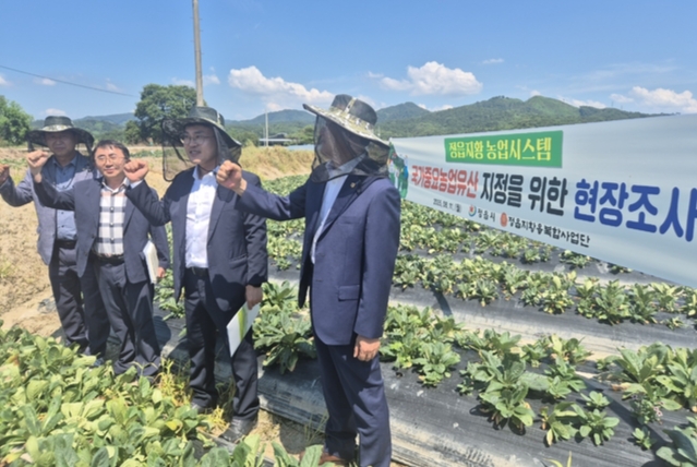 지난 8월 1일 정읍시에서 민선식 전북특별자치도 농생명축산산업국장 등과  지황의 국가중요농업유산 심사를 앞두고 현장 점검을 하고 있는 모습이다. /전북도