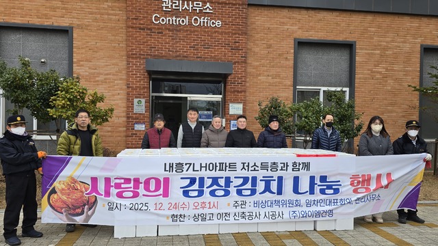 군산시 내흥동 LH아파트 7단지 비상대책위원회(위원장 신옥수)와 임차인대표회의(대표 최경열)•관리사무소(소장 이상열)가 혹한의 겨울을 앞두고 이웃사랑을 실천했다.