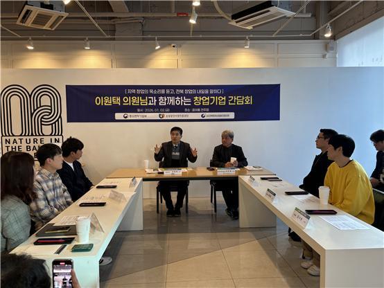 이원택 국회의원은 지난 2일 2026년 첫 행보로 꿈이룸 전주점을 방문, 신사업창업사관학교를 졸업한 창업기업 대표들과 간담회를 가졌다.
