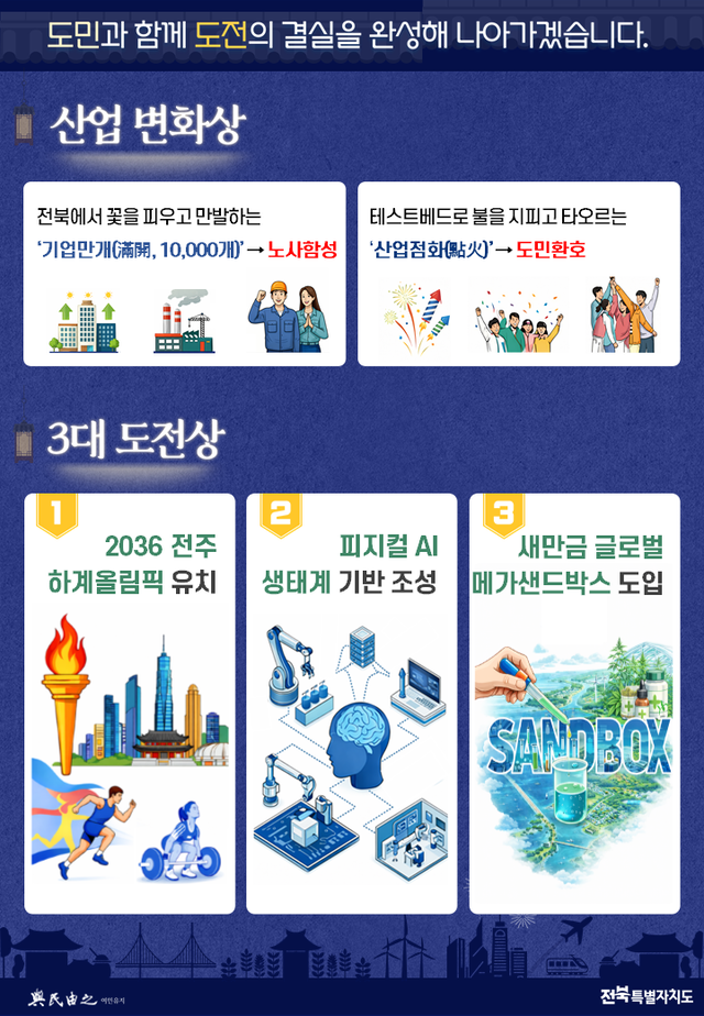 3년간 투자유치 17조원, 올해 20조원 목표 피지컬 AI 등 미래산업 전북형 성장 모델 구축 아동~노년층 생애주기 아우르는 통합돌봄 일자리·복지·의료·주거 등 삶의 변화 초점