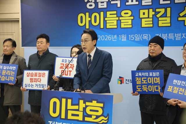 특히 “교사들에게는 높은 청렴도를 요구하고, 아이들에게는 정직하게 공부하라고 가르치는 사람이 바로 교육감”이라며 “후보의 도덕적 결함으로 인해 진보의 가치가 더 이상 훼손되는 일을 방치해서는 안 될 것으로 논란을 덮는 단일화, 책임을 회피하는 정치 메커니즘적인 연대는 결코, 전북교육의 미래가 될 수 없다”고 주장했다.