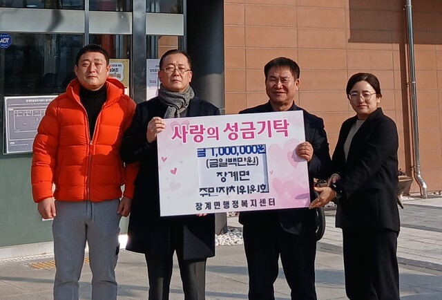 또한 장계면 주민자치위원회(위원장 이태진)도 장계면 행정복지센터에 이웃돕기 성금 100만 원을 기탁했다.