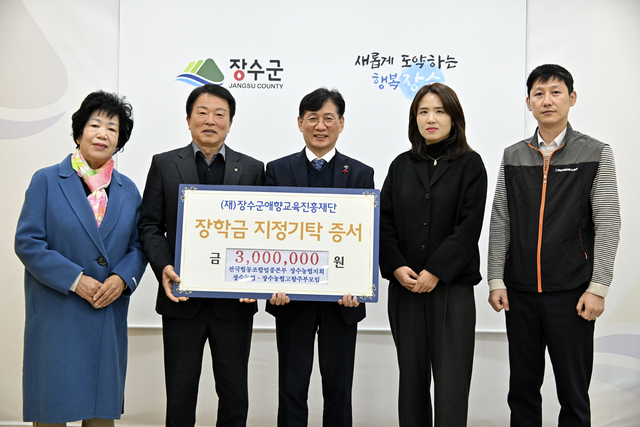 기탁된 장학금은 장수군 학생들의 학업 지원과 교육 프로그램 운영 등 지역 교육 역량 강화에 쓰일 예정이다.