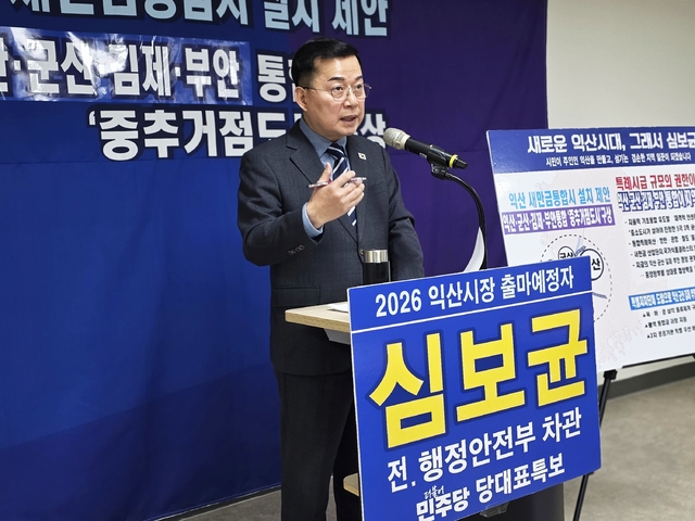 심보균 전 행정안전부 차관이 익산과 군산, 김제, 부안을 하나로 묶는 중추거점도시 통합 구상을 발표했다.